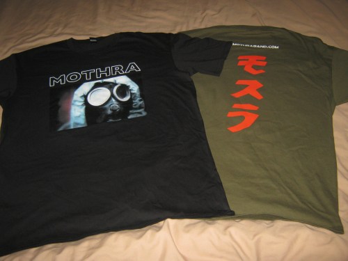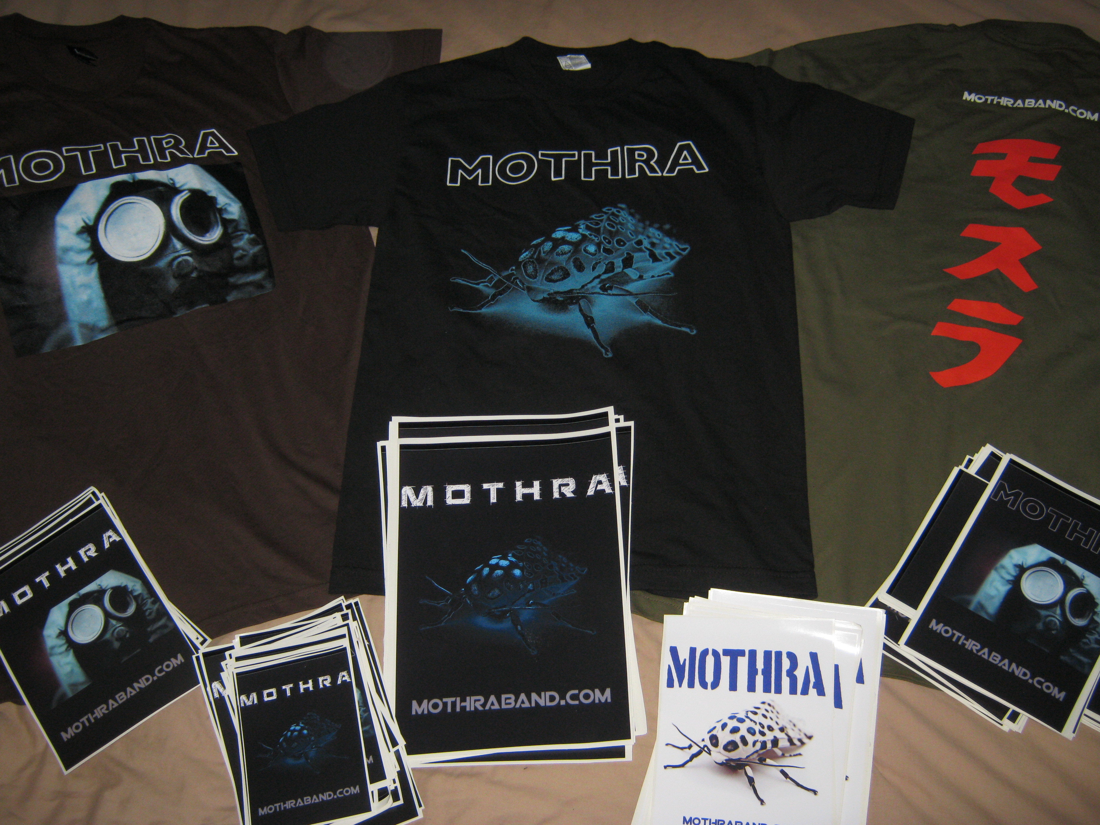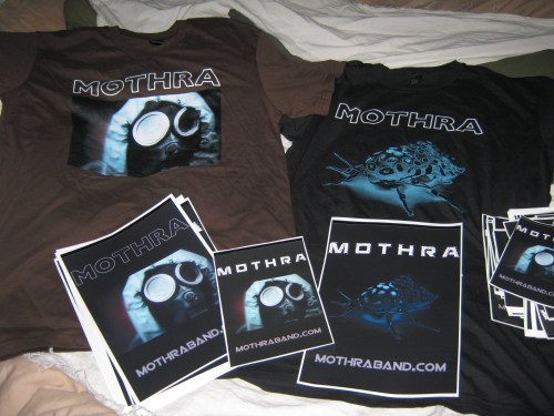 New premium merch now in stock. Official Mothra gasmask and Moth tee designs hand printed on quality tees, and some vinyl stickers to put on your car. Head on over to our merch site and place an order from anywhere in the world through paypal, easy. These tees were printed by independent screen printing company Local Traffic. If you live in Auckland and need some screen printing done, this is the place to go to.