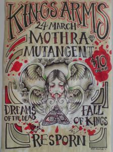 Kiaora, we’ll be playing a set at Resporn’s CD release party Friday July 17th at the Kings Arms Tavern in Newton. Also on the bill are Cripple Mr Onion and Legion. We’ll be on 1st around 9.30, $10 on the door. See you there!